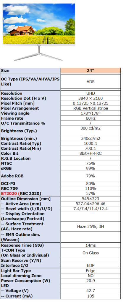 - Resolution Dot (H x V) 3840 × 2160