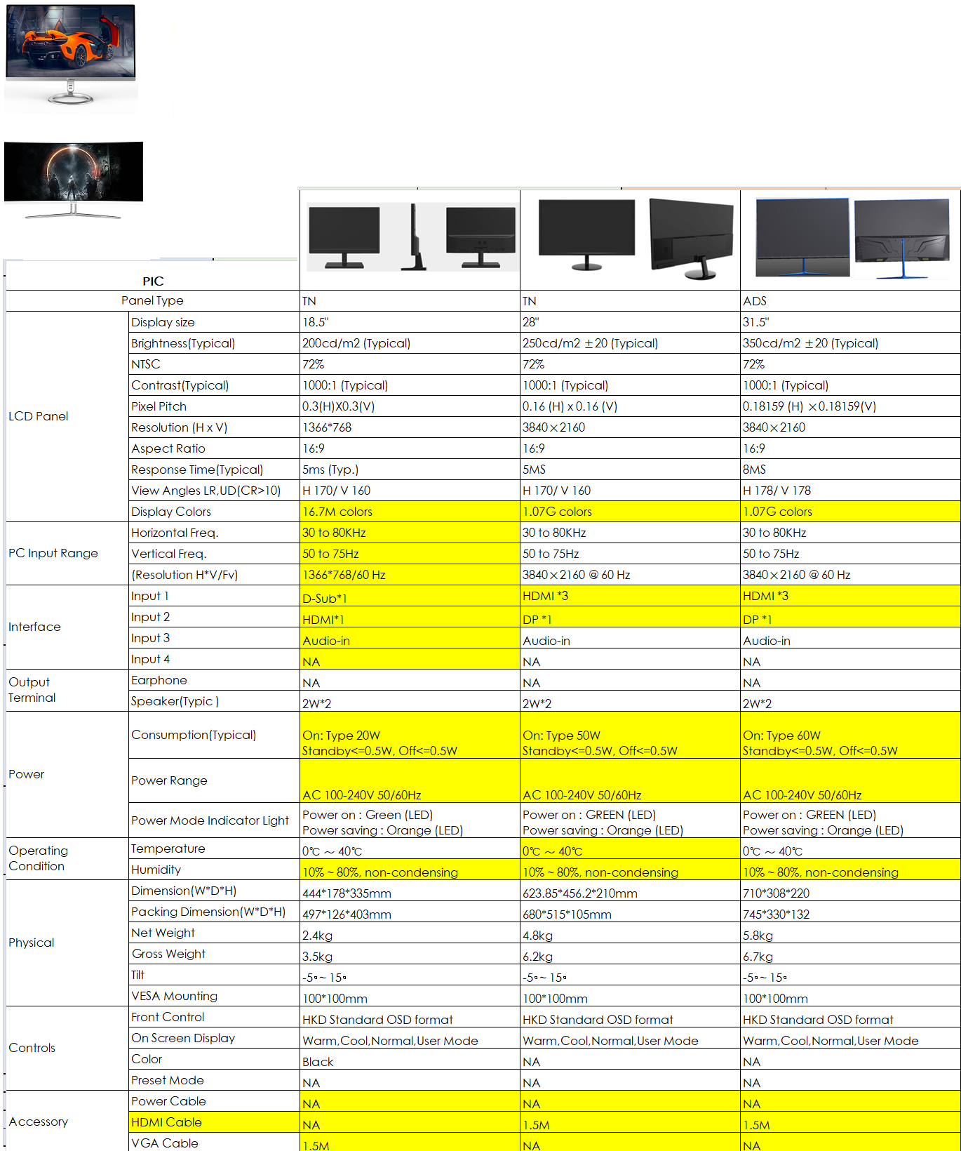 Viewing Angles: 170°/160°